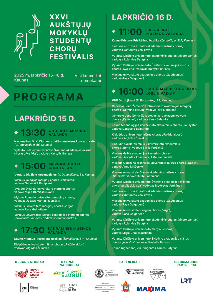 Lapkričio 15–16 d. Kaune susiburs studentų chorai, siekiantys puoselėti gilias chorinio meno tradicijas.