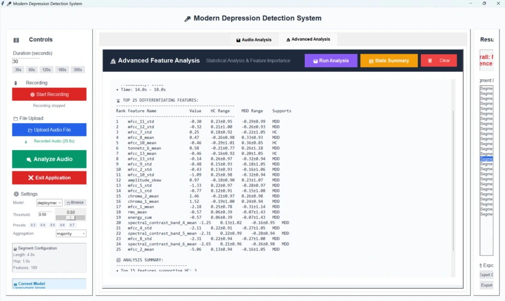 Pavyzdžiui, modeliai, apmokyti su gausesniu ir įvairesniu E-DAIC (anglų kalbos) duomenų rinkiniu, MODMA (mandarinų kalbos) rinkinyje pasiekė panašius ar net geresnius rezultatus nei pačiame E-DAIC rinkinyje. Tai rodo, kad egzistuoja universalūs, nuo kalbos nepriklausomi depresijos biožymenys.